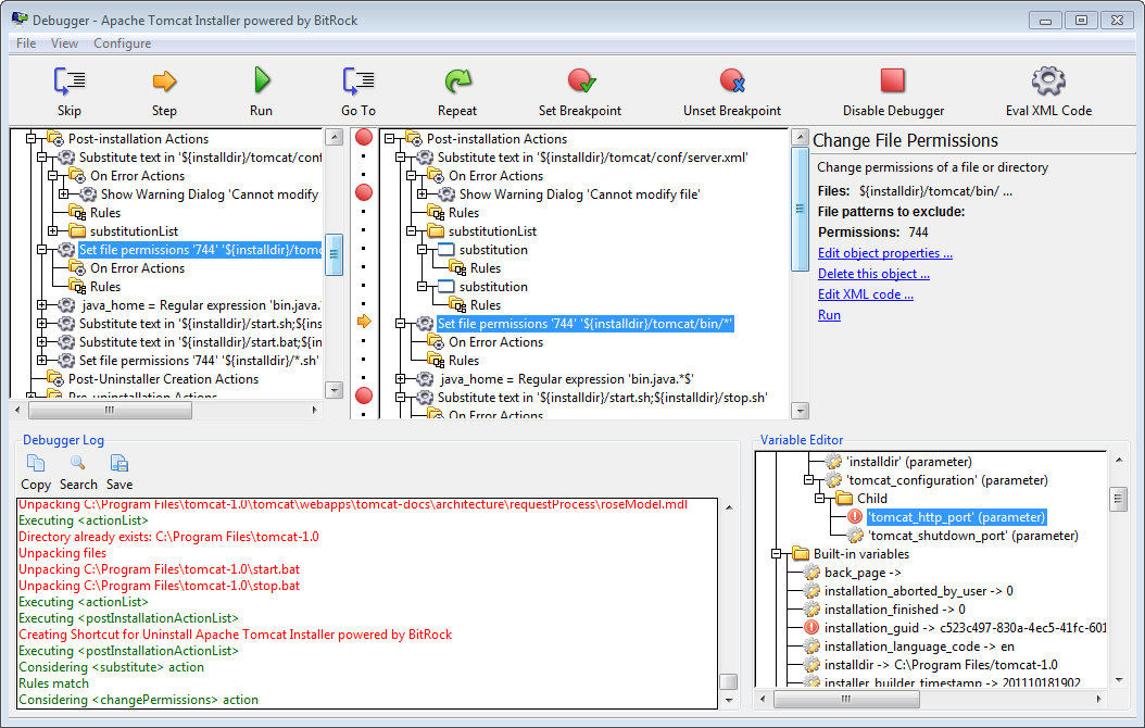 The new InstallBuilder debugger makes it easier to identify and correct issues during the development process. It allows you to view and interactively edit installer variables at runtime, provides step-by-step execution to test that specific parts of the installer are functioning properly, allows recovering from unexpected errors during the installation process and more. A complete guide to using the debugger is now included in the InstallBuilder documentation.